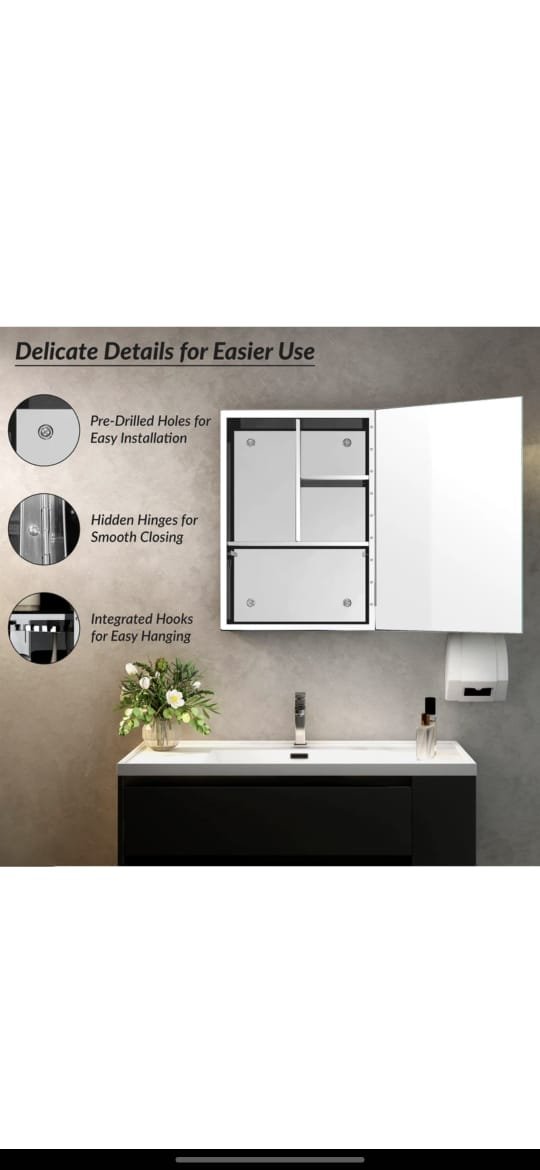 • High Grade Stainless Steel Mirror cabinet with Standard company Mirror.